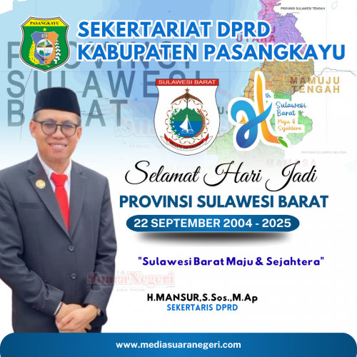 “Atas nama Sekretariat DPRD Kabupaten Pasangkayu, saya mengucapkan selamat Hari Jadi ke-21 Provinsi Sulawesi Barat. Semoga momentum ini menjadi motivasi bagi kita semua untuk memperkuat persatuan, meningkatkan pembangunan, dan mewujudkan kesejahteraan masyarakat,” ujar H. Mansur.