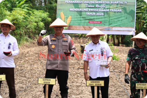 POLDA SULBAR, Mediasuaranegeri.com – Di sela-sela kunjungan kerjanya ke Polres Majene, Kapolda Sulawesi Barat, Irjen Pol Adi Deriyan Jayamarta, bersama jajaran pejabat utama Polda Sulbar, turut serta dalam kegiatan tanam jagung serentak kuartal IV yang dirangkaikan dengan peresmian operasional gudang penyimpanan jagung Slog Polri secara daring.