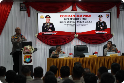 POLDA SULBAR, Mediasuaranegeri.com – Kapolda Sulbar, Irjen Pol Adi Deriyan Jayamarta, memberikan arahan inspiratif kepada jajaran Polres Mamuju Tengah (Mateng) dalam kunjungan kerjanya. Arahan tersebut berfokus pada internalisasi nilai-nilai luhur kepolisian sebagai “Abdi Utama Bagi Nusa dan Bangsa”, Selasa 14 Oktober 2025.