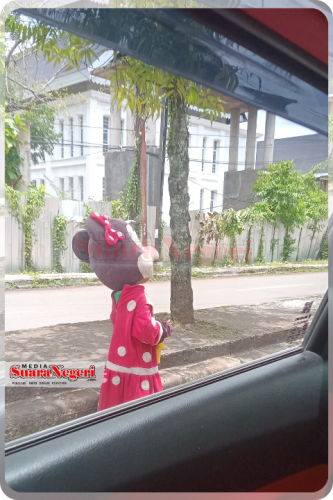 MAMUJU, Mediasuaranegeri.com – Seorang anak di bawah umur terlihat mengenakan kostum badut di persimpangan lampu merah Jalan Ahmad Kirang, tepatnya di sudut Lapangan Ahmad Kirang, Kecamatan Mamuju, Kabupaten Mamuju. Anak tersebut tampak menghibur pengguna jalan sambil berharap menerima sejumlah uang dari pengendara yang melintas.