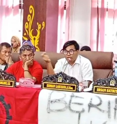 Setelah hampir satu jam berorasi, massa aksi akhirnya dipersilakan masuk dan diterima Sekretaris DPRD Kota Palu, sebelum dilanjutkan audiensi di ruang sidang utama.
